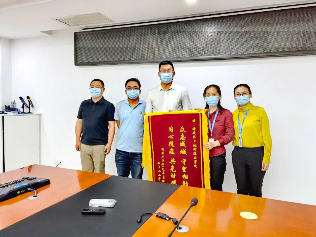 张兵对企业的疫情防控工作给予了充分肯定,他表示,在防控关键时期,企业要充分发挥带头作用、勇于担当,全面贯彻落实防控工作的部署,全力保障员工健康。街道也会统筹协调,在加强对企业疫情防控工作指导的同时,高效协同、主动服务,全力帮助企业解决实际问题,高质量做好服务保障工作。他还表示,锦旗不仅是对街道工作的认可、动力、更是责任,我们将以此为鼓励,齐心协力、一如既往地为居民办实事,做企业的贴心人!