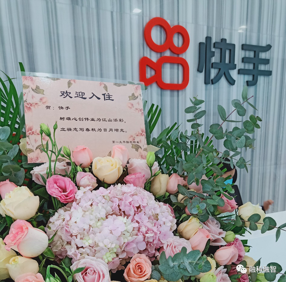 在此,融科融智资产管理集团有限公司祝贺快手公司乔迁融科融智创新园!平安福地,紫薇指栋;吉庆公司,春风架梁!